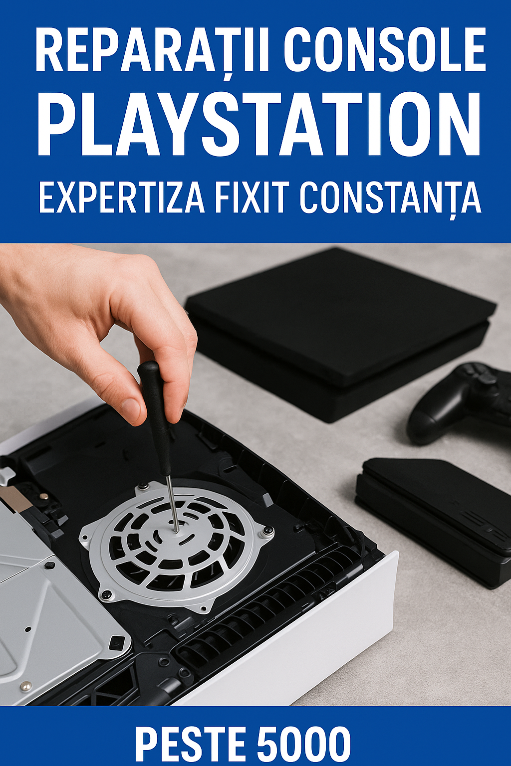 La FixIT Constanța, pasiunea pentru tehnologie se îmbină cu experiența practică. Suntem specializați în diagnoză, reparație și întreținere pentru toate modelele de console PlayStation – de la clasicele PS4, până la puternicul PS5.